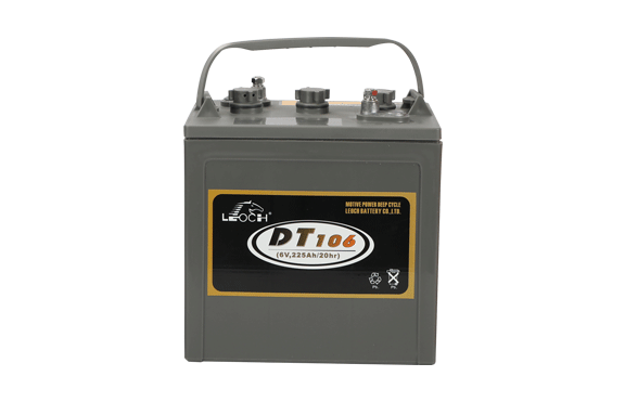 DT系列高尔夫球车电池为富液式铅酸蓄电池。极板设计为平板结构及电解液保持富液状态。特殊的铅膏配方提高深循环性能,高导电性端子有利于电池大电流放电性能。